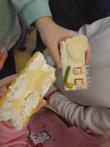 V družině si to často chystáme svačinky ještě o kousek zábavněji: někdy hrajeme poznávačku naslepo, jindy chystáme pomazánky, zdobíme a servírujeme. Děti si samy připravovaly talířky, mazaly, skládaly i krájely – a hlavně ochutnávají.